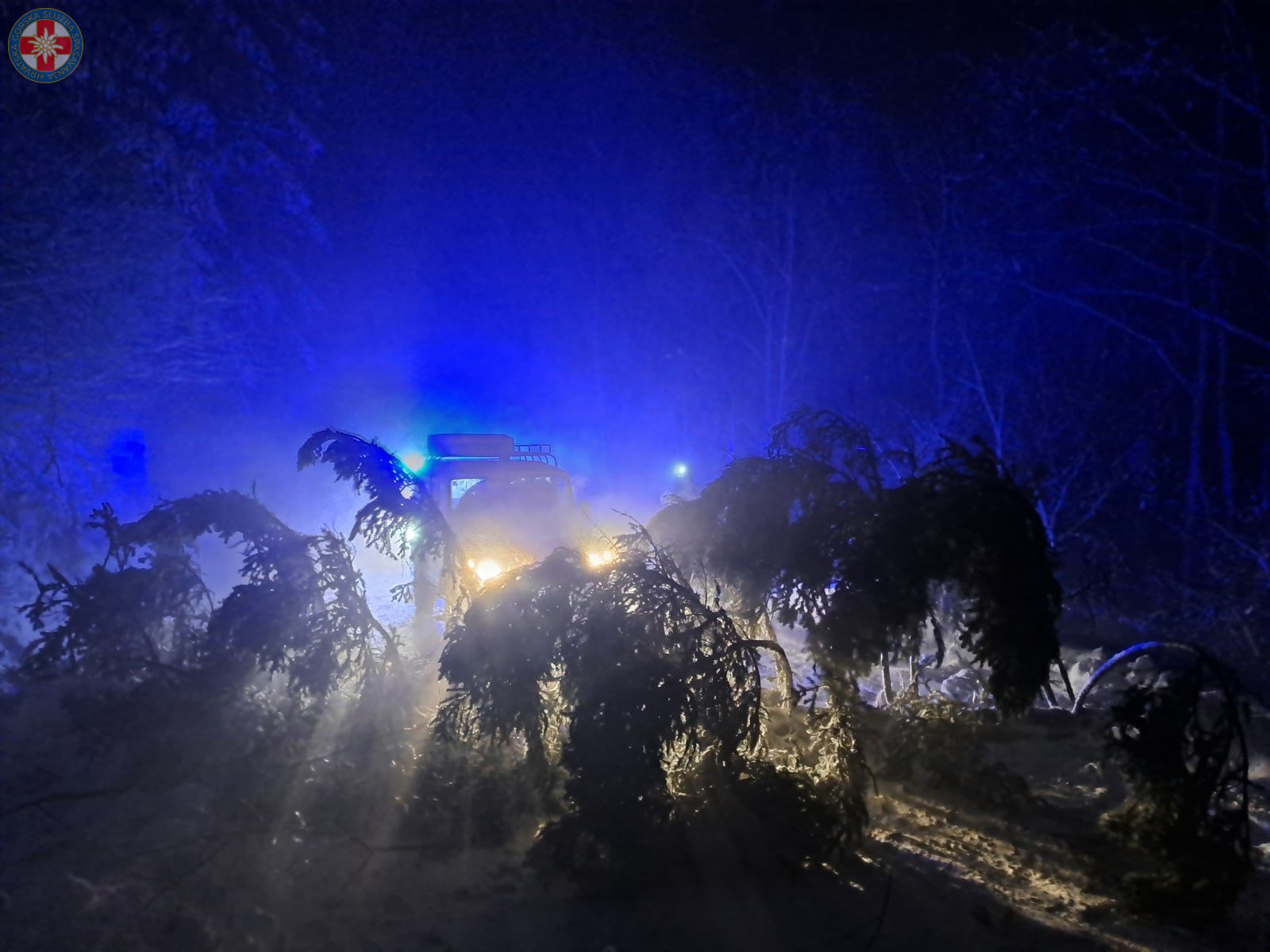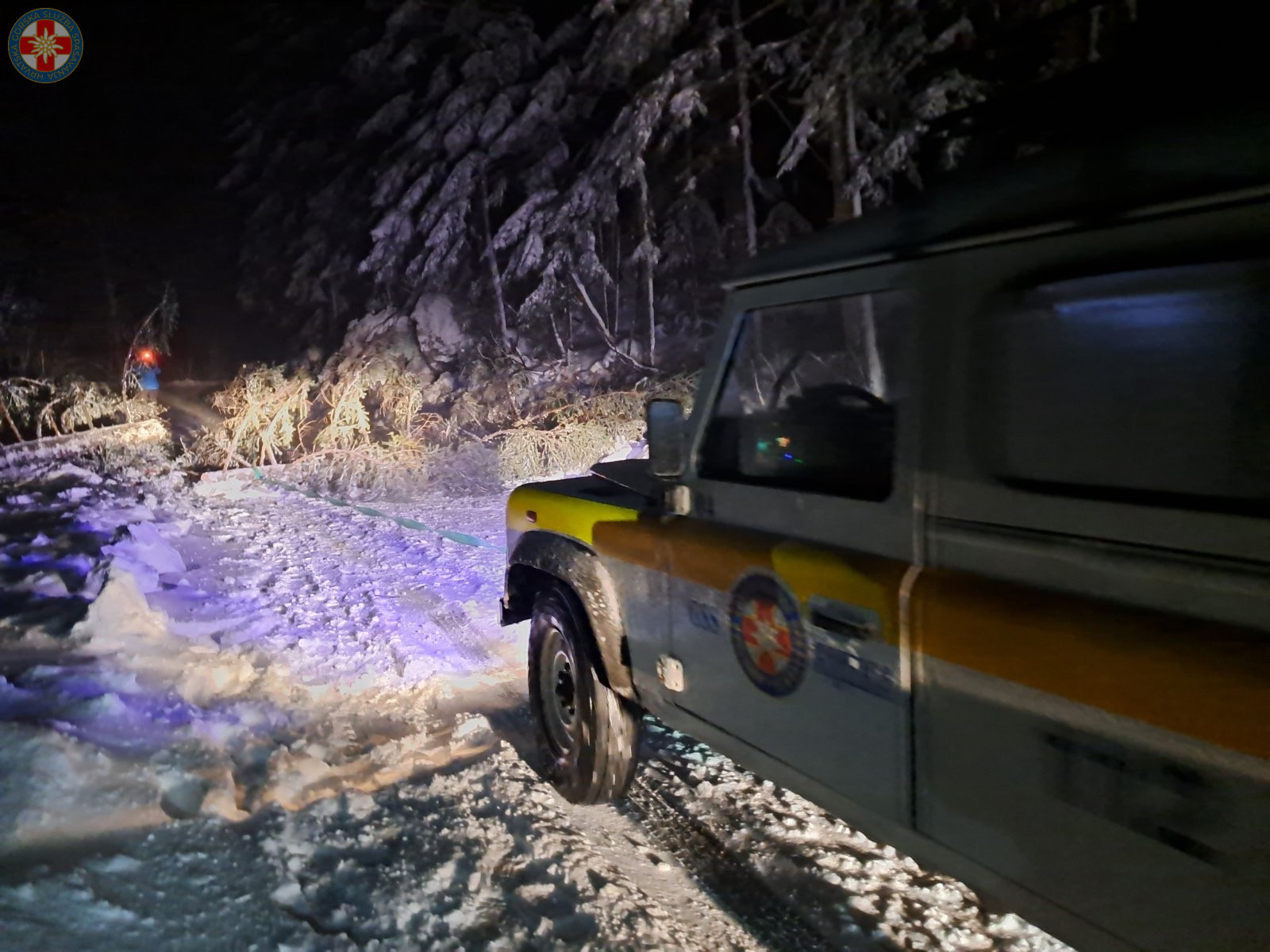 Put do drugog automobila blokiralo je srušeno stablo koje priječi cestu. Vozač ralice nas poziva u pomoć za deblokadu prometnice, te se vraćamo i pomoću vitla uklanjamo stablo kako bi se oslobodio put ralici do idućeg automobila. Nakon što su svi automobili odblokirani i osobe bile na sigurnom, vraćamo se u bazu čime je ova akcija završila oko 2:30. Ovim se putem zahvaljujemo cestarskim službama bez kojih bi ova akcija bila puno zahtjevnija.