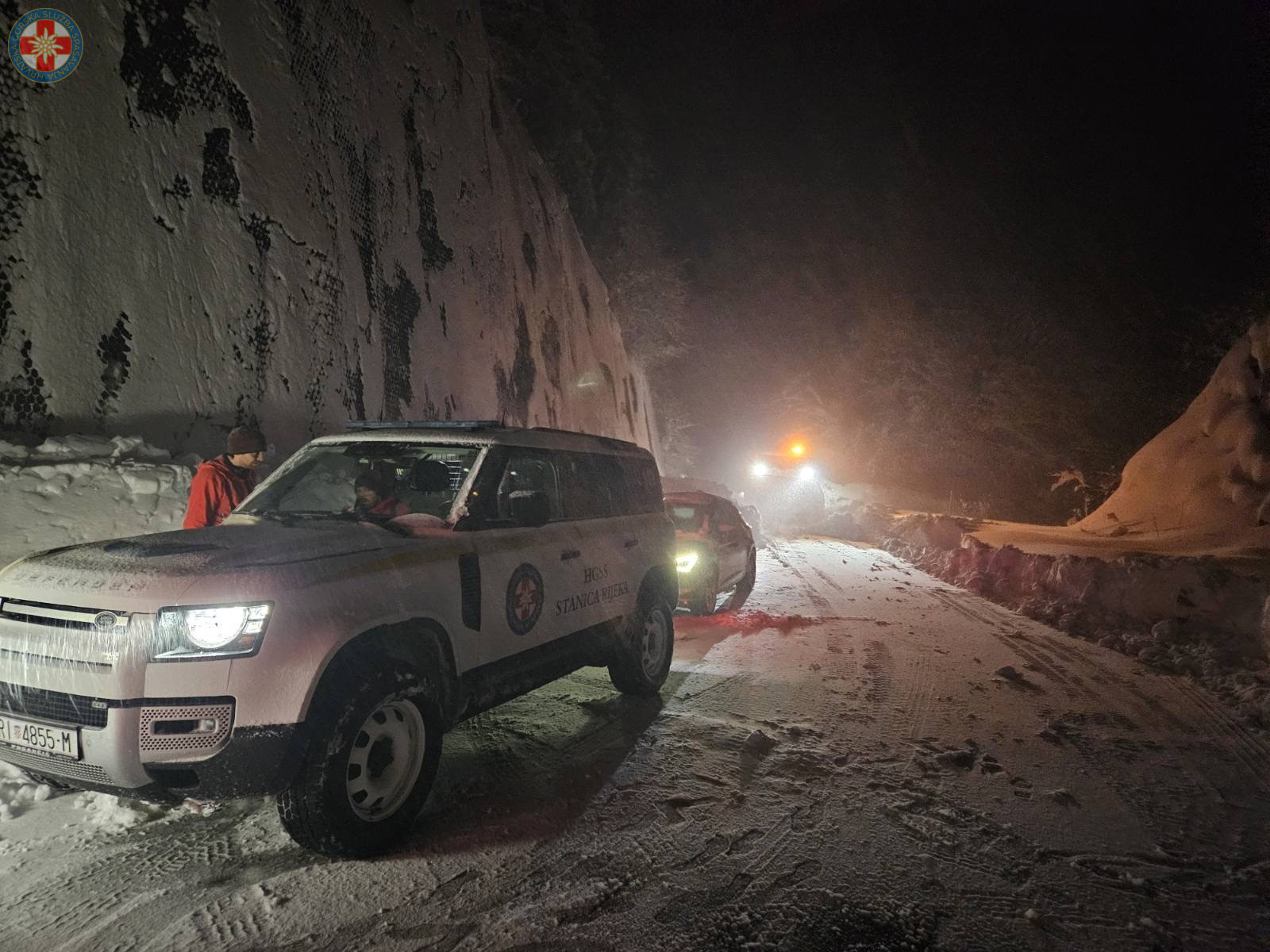 Odmah po pozivu na teren iz interventne baze Vežica izlazi 15 članova HGSS stanice Rijeka s 4 interventna vozila. Do blokiranog automobila prva dolazi ralica koja, u koordinaciji s voditeljem akcije, počinje iskopavati auto do dolaska naših članova. Nakon što je ovaj auto oslobođen a osoba bila na sigurnom, ralica kreće u izvlačenje drugog automobila.