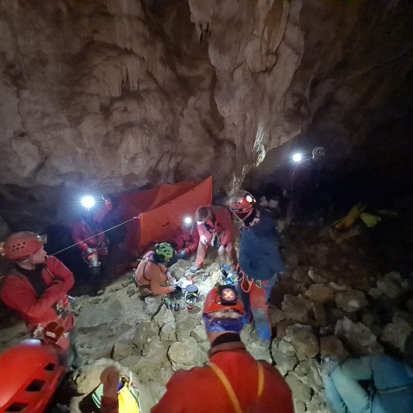 S dubine od cca 50 metara „unesrećenog“ je trebalo zbrinuti i iznijeti kroz vertikalne i horizontalne dijelove jame, a najveći izazov vježbe bio je prolazak kroz uske i zahtjevne prolaze koje je trebalo proširiti da bi se nosilima uopće omogućio prolaz.