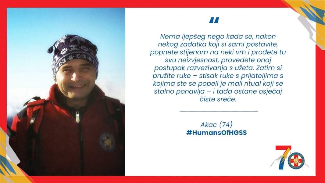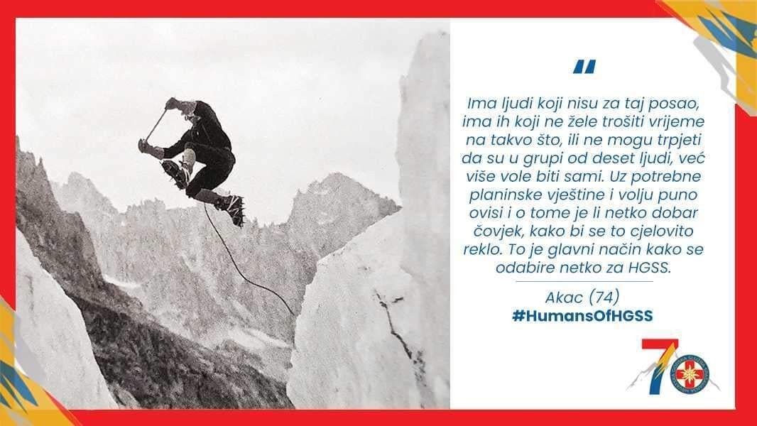 U nizu tekstova o ljudima HGSS-a, donosimo neizostavnu priču o Akcu u kojoj, za novinarku časopisa Mirovina Vladimiru Paleček, objašnjava kako je razvio ljubav prema penjanju, u čemu je pronalazio inspiraciju te koje je korisne savjete dobio na samom početku svoje karijere u HGSS-u. #HGSS70 #HumansOfHGSS #LjudiHGSSa