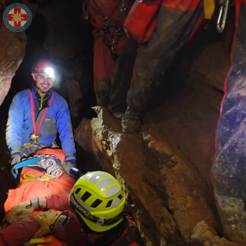 Vježba je započela pripremom opreme u jutarnjim satima u prostoru Stanice. Naglasak vježbe bio je na radu sanitetske ekipe, odnosno zbrinjavanju unesrećene osobe i njenom utopljavanju, izradi udobnog i toplog bivka te pripremi za transport nosilima. Transport unesrećene osobe u speleološkim nosilima odrađen je kroz dio horizontalnih kanala uskog i zavojitog meandra na dnu špilje i na dijelu vertikalnih kanala i meandara u vertikali. Članovi Stanice izradili su dva sidrišta sa sistemom protuutega i kosu prečnicu za transport nosila preko blatne dvorane. Nakon završetka transporta, krenulo se prema izlazu iz špilje. Špilja je raspremljena na način da je sva oprema izvađena iz speleološkog objekta, a zadnji spašavatelji su je napustili oko ponoći.