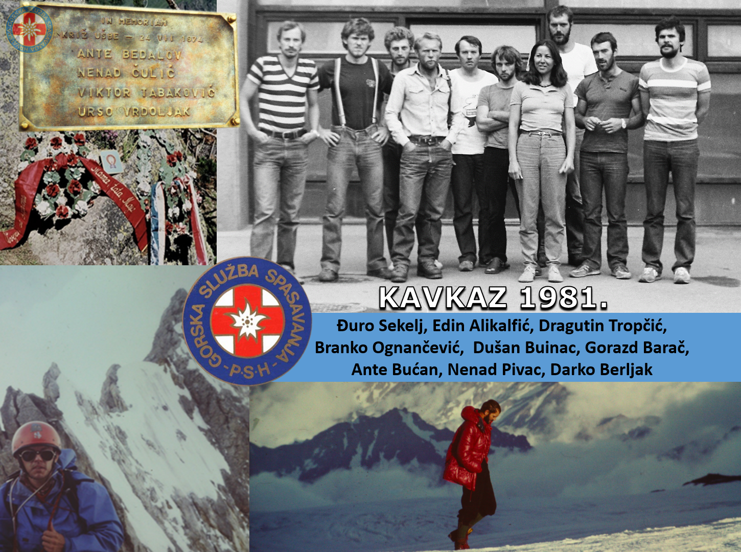 1. Memorijalni pohod, postavljanje spomen ploče za četiri naša gorska spašavatelja poginulih 1974. godine; usponi u stijenama Slobodna Španjolska, Pik Kavkaza i Donguz-oruna