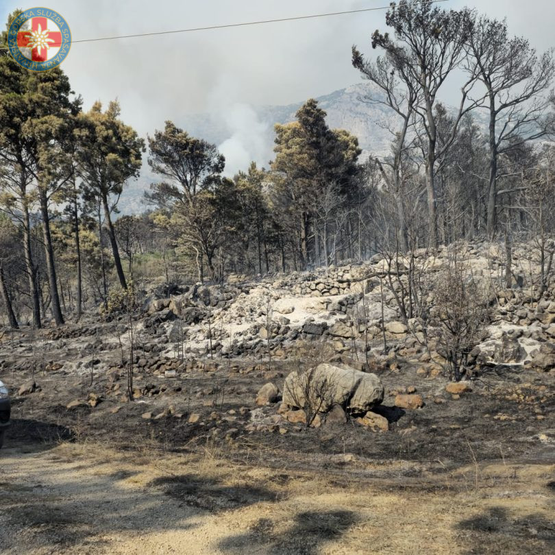 Na poziv zapovjedništva DVD Tučepi, spašavatelji HGSS Stanice Makarska intervenirali su na požarištu s ciljem pomoći unesrećenom vatrogascu. Zbog nepristupačnog i teško prohodnog terena ali i trenutačno devastirane površine, jedan od vatrogasaca zadobio je opekotine na nozi.