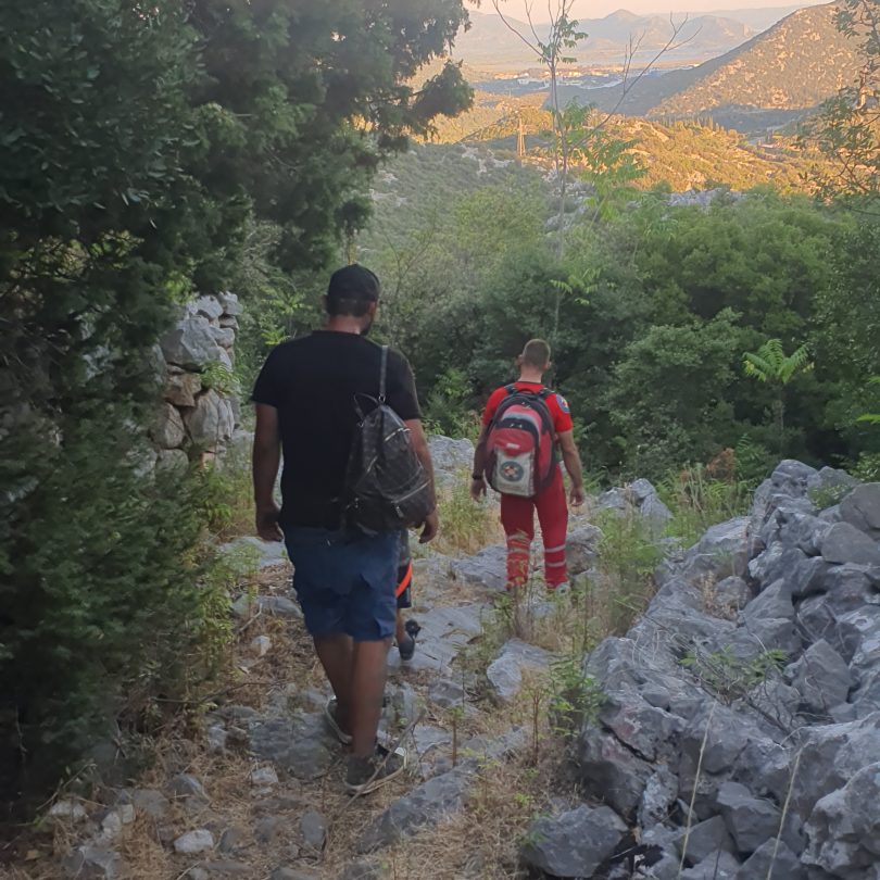 U komunikaciji s pozivateljima saznajemo da se radi o ocu i sinu koji su pri spuštanju s vrha Sveti Ilija pored mjesta Gradac krenuli neoznačenom stazom prema zaselku Rudine. Osobe su bile iscrpljene i nalazile su se na nepristupačnom području bez vode. Odmah po dojavi na teren kreće petero spašavatelja HGSS stanice Dubrovnik. Kako se radi o rubnom području Splitsko-dalmatinske i Dubrovačko-neretvanske županije u ispomoć je pozvana i stanica Makarska.