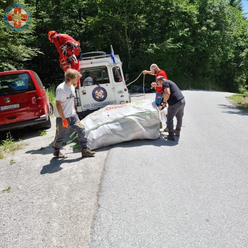 U utorak, 22. lipnja, a prema prethodno dogovorenom planu za izvlačenje otpada iz šume u Malom Lipovcu i Vranov Dolu na području PP Žumberak – Samoborsko gorje korištene su speleo tehnike (tirolska prečnica i protuuteg). Sakupljeni otpad nakon prebacivanja preko jaruge od cca 50m prebačen je terenskim vozilom na prometnicu kako bi ga djelatnici “Komunalca Samobor” odvezli i zbrinuli. U ovoj akciji sakupljeno je cca 5m3 odbačenog otpada, dok su svi sudionici akcije u dva dana čišćenja ukupno sakupili 15m3 otpada.